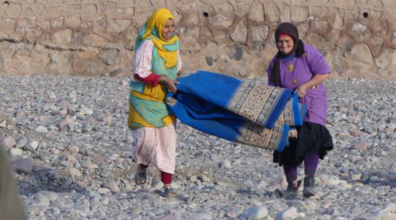 Hier en daar wordt door vrouwen de was gedaan in de irrigatiekanaaltjes, zelfs zware vloerkleden worden er gewassen.