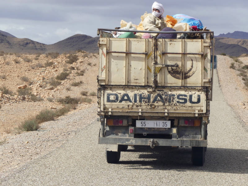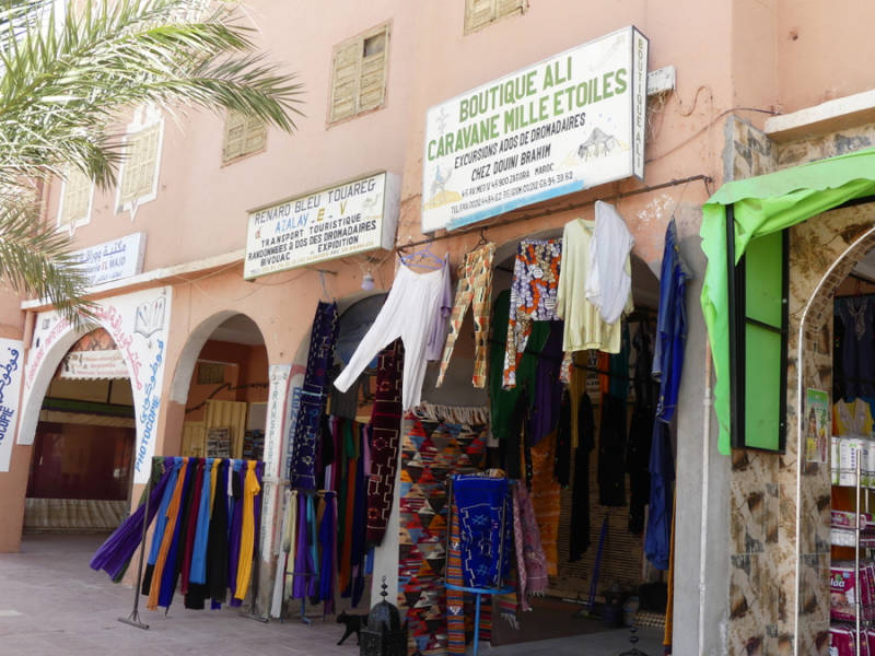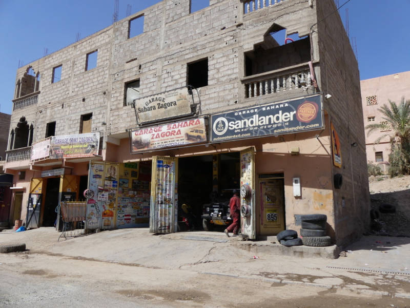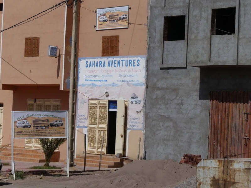 Het stikt in Zagora van de reisbureautjes, vooral in de doorgaande brede hoofdweg, sommige zitten in wat groezelige pandjes.. Je kunt daar een tocht boeken met een 4x4 naar Mhamid en verder naar de zandduinen. Voor toeristen die in Marrakech logeren is dit een mogelijkheid om nog iets van de Sahara te zien. Merzouga is natuurlijk veel interessanter maar dat is te ver. De chauffeurs van de Toyota’s of andere 4x4’s zijn jonge macho’s met tulbanden , wijde wapperende jurken’ en een manier van lopen die uitstraalt ‘wij willen wel een Europese chick versieren.’