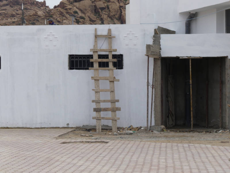 Onbegrijpelijk in onze ogen is de bouw van 2 grote betonnen vierkanten, een soort schuttingen, middenin de oase, in één ervan lopen schapen. Geen idee waar deze bouwwerken voor dienen, er is hier duidelijk geen welstandscommissie die deze lelijke bouwsels op zo’n mooie plek rigoureus afwijzen.