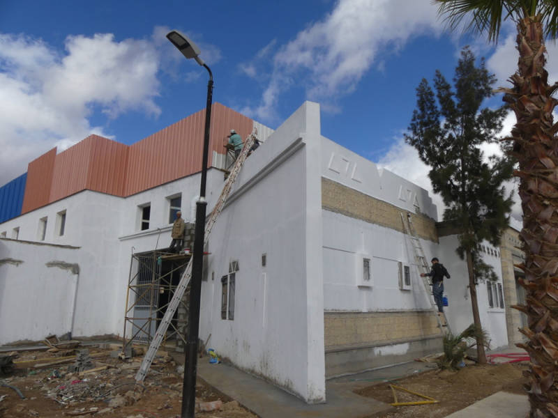 Er is naast de camperplaats een paar geleden een grote middelbare school gebouwd, momenteel is de bouw van een groot overdekt zwembad bijna klaar.