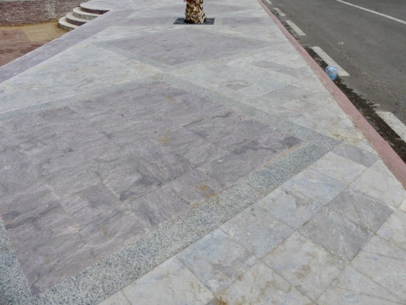 een beetje een rommelige wijk, wel weer arcaden, de pilaren zijn met gedecoreerde tegels betegeld