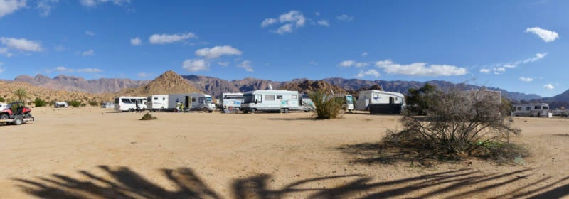 Nu vindt niet iedereen een verzameling campers in de oase een fraai gezicht, de bevolking hoor je niet klagen , die zijn blij omdat er flink aan de aanwezigheid van de camperaars verdiend wordt.