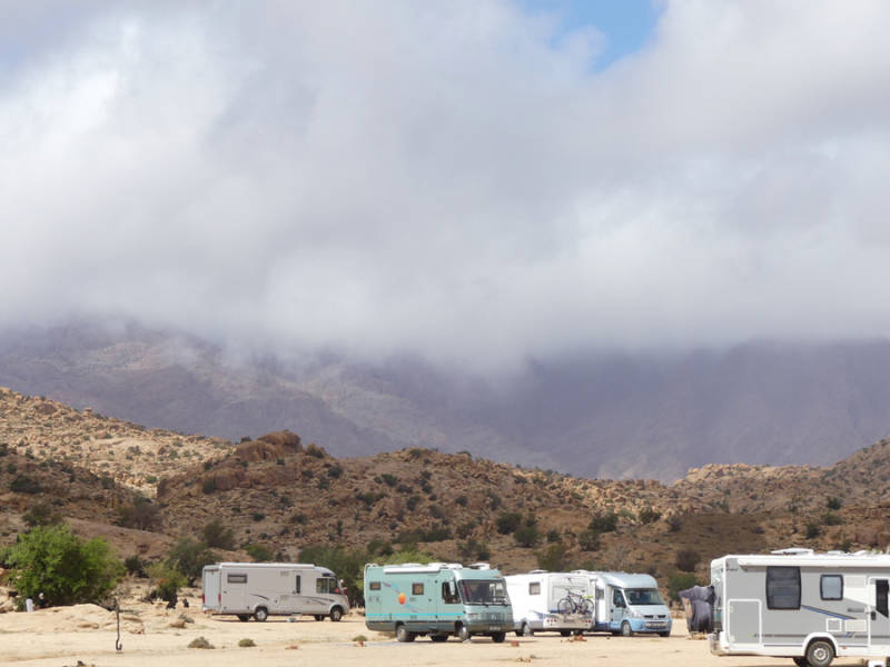 Wat opvalt is dat er ieder jaar grotere campers naar Marokko komen. Was dat al het geval in Spanje , waar mn Duitsers verschenen op gedoogplaatsen met ‘Glampers’, ook in Marokko is dat nu het geval, niet alleen Duitsers maar ook andere nationaliteiten. Misschien dat het ons dit jaar opvalt hier in Tafraout omdat we in een ‘betere buurt’ staan.