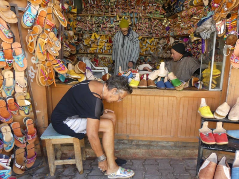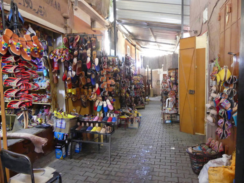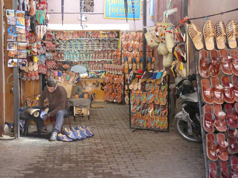 Dus hebben we vanmorgen nog wat laatste boodschappen gedaan de elders niet verkrijgbaar zijn, althans wij hebben ze nog niet gevonden. En we hebben babouches gekocht, zoals ieder jaar weer bij dezelfde handelaren, vader en zoon. Tafraout staat bekend om de fabricage van babouches die in kleine winkeltjes annex werkplaatsen verkocht worden.