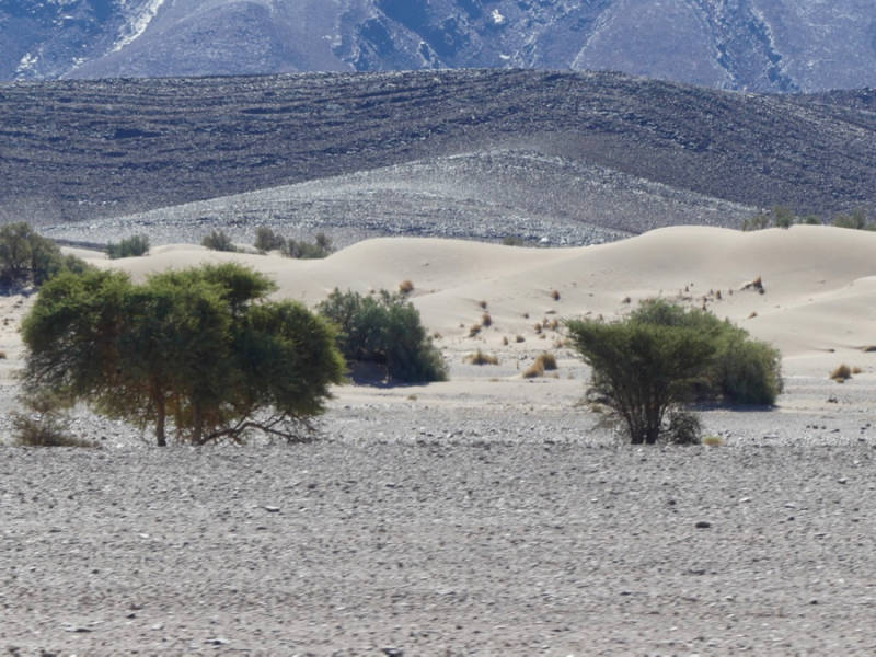 Het landschap veranderde gedurende de de rit, was er eerst een groenige waas over de aarde door opkomende bloemen en plantjes door de regen, later was het kurkdroog en verschenen er ‘waaibomen’ in het landschap.