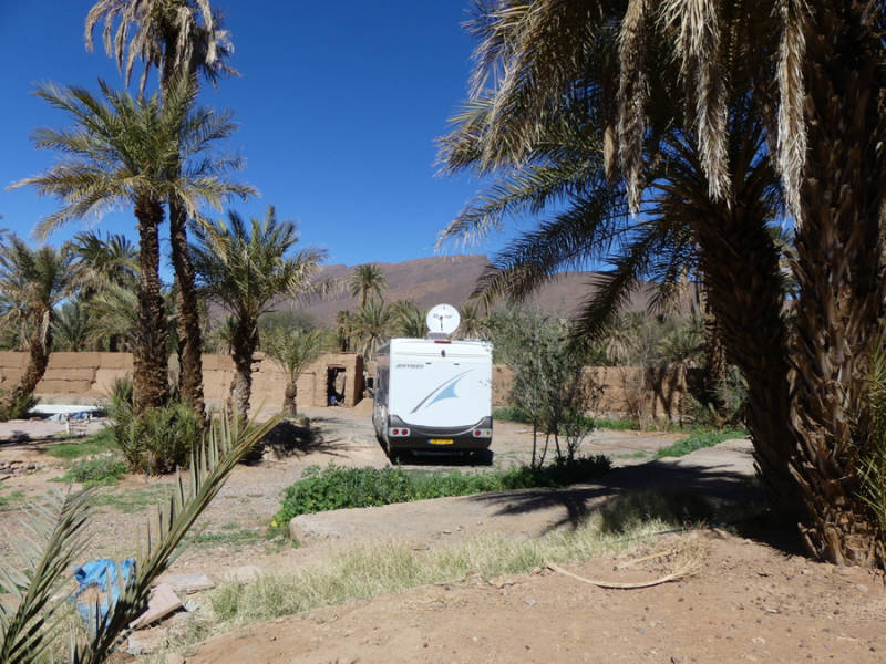 We staan in Zagora weer op camping Les Jardins de Zagora, gewoontegetrouw. Het moet ongeveer de 8ste keer zijn dat we hier staan en de eigenaar herkent ons altijd onmiddellijk evenals de kruidenier dichtbij die altijd weer enthousiast is als hij ons ziet.