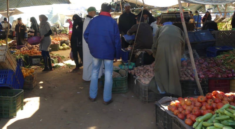 Er was souk vandaag, dat wisten we, dat maakte de beslissing om te vertrekken vanmorgen ook minder moeilijk. Het is een kleine souk met veel huishoudelijke artikelen en een groenteafdeling.