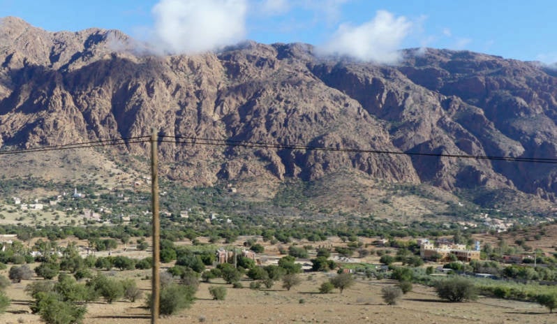 We zijn eerst een stukje over de R104 gereden richting Igherm, die overgaat in de R106. De amandelbomen bloeiden uitbundig, wat later dit jaar door de kou.