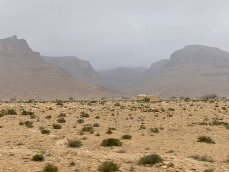 We hebben ruim 5 weken geen regen gehad, we hebben het 5 weken niet zo koud gehad, de temperatuur daalde in de regen naar 7,5º en we hebben 5 weken geen lange broek aan gehad op één keer na in Mhamid na ’s avonds bij het nomadenfestival. Later op de middag brak de zon door en werd het nog 13º. We konden nog een wandeling maken en je zit hier duidelijk op het platteland in het noorden. Eenvoudige boerenwoningen en vlakbij zijn percelen met doperwten en tuinbonen. En boer sprak ons aan en sprak 3 woorden Frans en voor de rest Tamazight (Berbers) dus een erg lang gesprek werd het niet.
