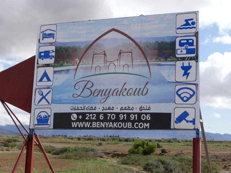 Lamrije, hotel met camping 'Benyacoub' , N34.02339 W3.24860, alle voorzieningen, 80dh, stroom 10dh