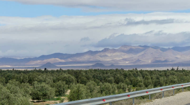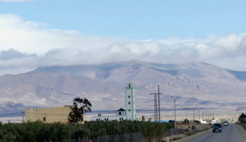 Vanmorgen zijn we eerst naar Nador gereden. Dat was een rit van 150km die door het Rifgebergte ging die hier niet zo hoog is. Mooi wel voor zover laaghangende wolken het uitzicht niet bedorven. Want die waren er wel, er viel af en toe een klein beetje motregen, we hebben overigens wel geluk gehad met het weer. Waar we vandaan kwamen zouden er buien tegen de middag gaan vallen terwijl het aan zee juist droog zou worden. Dat klopte inderdaad, in Nador was het droog. Maar de straten waren kletsnat en modderig zodat de camper een bruine waas had gekregen. Even daarvoor hadden we ongeveer 30km lang de slechtste weg tot nu toe gehad in Marokko, veel gaten langs de zijkant van de asfaltweg, grootte van een afwasteiltje, bij een tegenligger moest je vaak afremmen om niet door het gat te rijden.