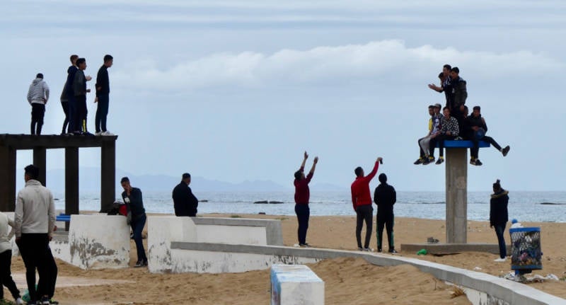 De (jonge) jongeren die hier aan de grens rondhingen zijn verslaafde lijmsnuivertjes , losgeslagen jongeren uit heel Marokko, eerder donker dan licht getint ,maar beslist geen Afrikanen die ten zuiden van de Sahara zijn gekomen. Die zullen er ongetwijfeld wel zijn maar wij hebben ze niet gezien.