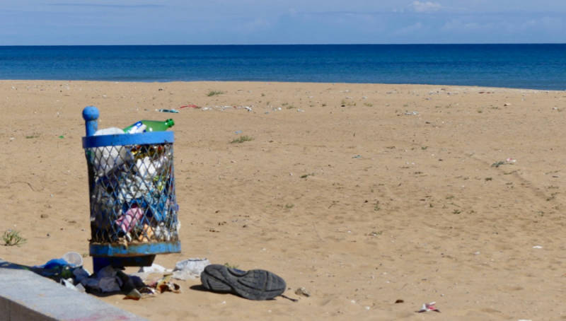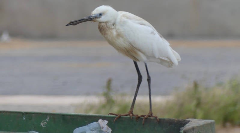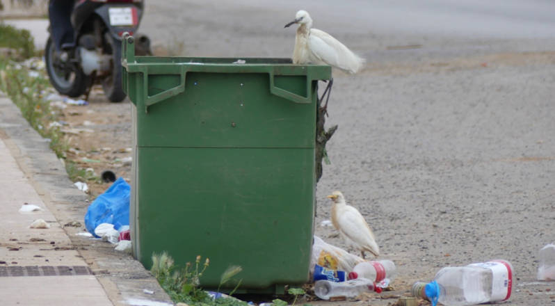 Het strand is tamelijk schoon voor Marokkaanse begrippen, de omgeving daarentegen ligt vol met zwerfvuil. En dan helpt het ook niet dat de vuilcontainers langs de weg overvol zijn en er veel afval naast beland is door toedoen van zwerfhonden en kleine zilverreigers en koereigers, die zich ook kunnen ontpoppen als drekbakkenras net zoals bv . de reigers in Amsterdam. Deze mooie vogels zien er hier toch even anders uit, hun schoonheid is even ver te zoeken.