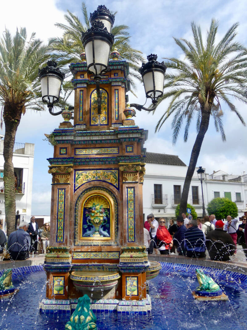 De prachtige fontein in het midden van de Plaza España in Vejer de la Frontera, is bekleed met azulejos