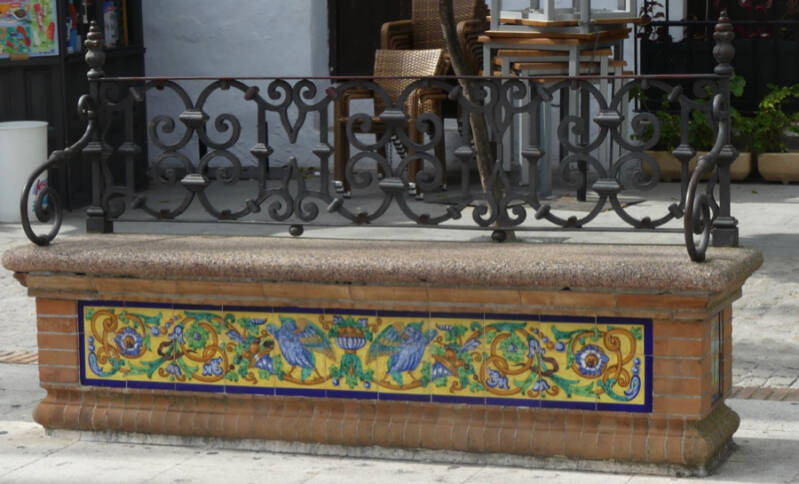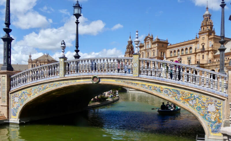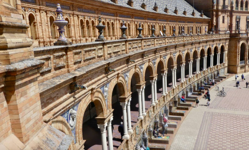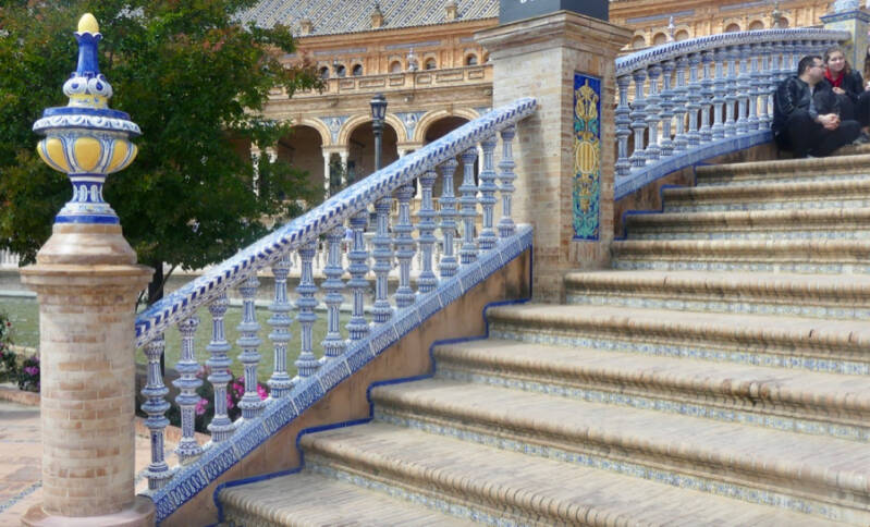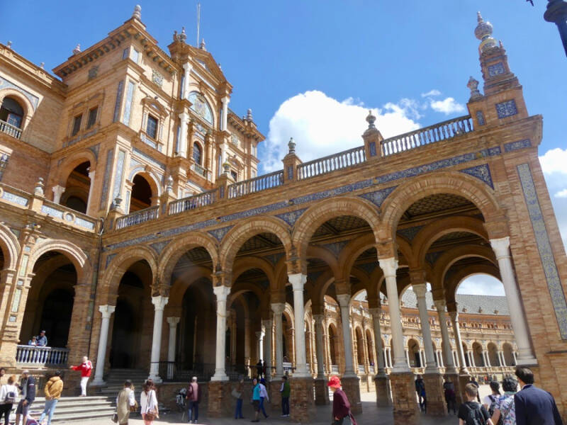 Na de lunch zijn we na de volgende bui de stad ingegaan, als het mooi weer is , is dat leuker. We hebben geen haast, we hebben al het een en ander gezien van Sevilla dus zijn we eerst naar het Plaza España gegaan. Dit halvemaanvormige plein is in 1929 gebouwd en een prachtig gebouw is daaraan gelegen, het Paviljoen de España. Het is in een veelheid van stijlen opgetrokken maar vormt toch een eenheid. In het oog springend zijn de vele azulejos die er in zijn verwerkt . We zijn trouwens begin dit jaar naar een azulejosmuseum geweest in het stadje Onda. Marokko winter 2019 (22-01-2019)
