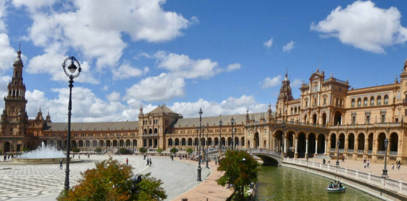 Sevilla is een stad die al 2000 oud is en heeft verschillende beschavingen gekend zoals de Romeinen en de Moren. Deze hebben hun sporen in de stad nagelaten, vooral de invloeden van de Arabische cultuur zijn in de beroemdste monumenten terug te zien zoals je trouwens overal in vooral Andalusië de sporen van de Moorse periode terug ziet. Je ziet daarnaast Middeleeuwse, Renaissance en Barok invloeden in de stad. Ook Spaanse Joden (Sefardim)hebben er altijd gewoond, m.n. in de wijk Santa Cruz, zelfs in de Moorse tijd werden zij ongemoeid gelaten maar na de reconquista, de herovering door de christenen, sloeg langzamerhand het tij om en werden Joden gedwongen zich tot het christendom te bekeren, althans diegenen die de pogrom van 1391 hadden overleefd. Sevilla heeft het grootste historische centrum van Spanje.