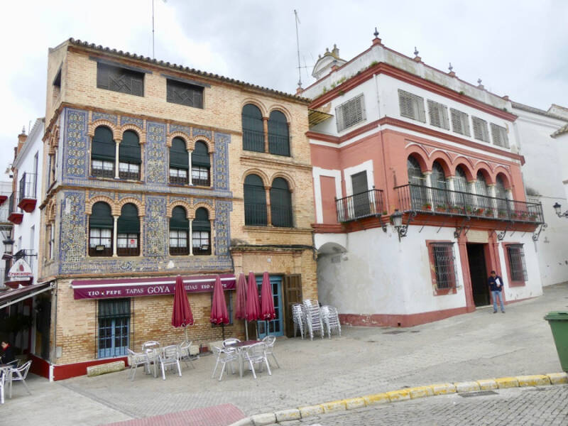 We zijn vanmorgen voor een eerste indruk het stadje ingewandeld en we vinden de relatieve rust niet alleen een verademing bij het drukke Sevilla maar we vinden het ook nog eens een mooi stadje. Er zijn wel wat toeristen maar die we hebben gezien waren niet met busladingen aangevoerd. Er zijn, naast de nodige kerken en een klooster, ook een mooi plein, Plaza San Salvador, mooie huizen ,veel erkertjes aan de huizen waar aan de onderkant azulejos tegenaan zitten. Ook allerlei overblijfselen uit de Romeinse tijd die te bezichtigen zijn, wellicht dat we dat morgen doen want we blijven dan ook nog hier.
