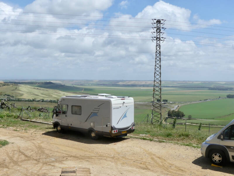Er kwamen vanmiddag wat campers bij nadat de campers die hier vannacht stonden zijn vertrokken. Allereerst kwam er een Nederlandse camper, we hebben het even over Marokko gehad. Ze vonden het nog een beetje eng om daar alleen naar toe te gaan, we hebben ze een link naar onze site gegeven. Later kwamen er nog een Duitse, Italiaanse en een Spaanse camper bij. We hadden wat meer Spsnjaarden verwacht aangezien het morgen 1 mei is.