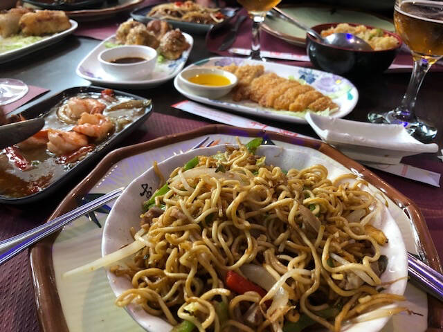 Vanwege de regen zijn we vanmorgen niet zoals gebruikelijk eerst water gaan halen bij de fontein in het park en vervolgens boodschappen gaan doen maar zijn we in de camper gebleven. We hadden weliswaar geen brood meer maar we hadden afgesproken met Bram en Marianne te gaan eten ’s middags, dus dat brood was niet meteen nodig. We zijn naar een Japans restaurant gegaan, ook daar een buffet libre, eten zoveel je wilt voor €9,95 p.p. Het eten was verrassend lekker voor die prijs, geen eenheidssmaak maar ieder gerecht smaakte anders, ook de sausjes erbij waren verschillend en smaakvol, kortom zeker voor herhaling vatbaar.