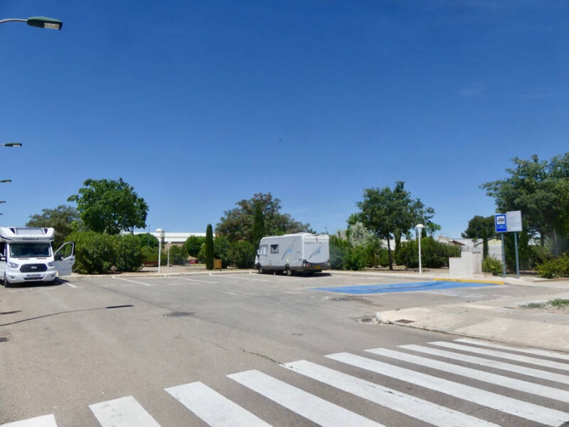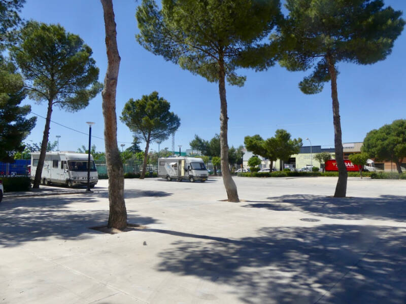 We hebben ervan afgezien om daar te overnachten, je mocht absoluut niet buiten op een stoeltje zitten en om de hele middag in de brandende zon in de camper te moeten zitten, dat trok ons ook niet. Daarom zijn we naar Valdepeñas gereden, een stad die we kennen van een paar uitstekende rode wijnen die daar worden gemaakt. We staan op een cp die op een industrieterrein ligt, erg groot en we staan hier met 4 campers. Naast ons staan Engelsen, de man heeft bij de RAF gewerkt en die is hier om wijn te kopen, hij wil 150 liter meenemen. We wilden eerst morgen ook hier blijven en dan de stad bezoeken maar morgen wordt het 31º, we gaan nu richting de zee waar het koeler is.