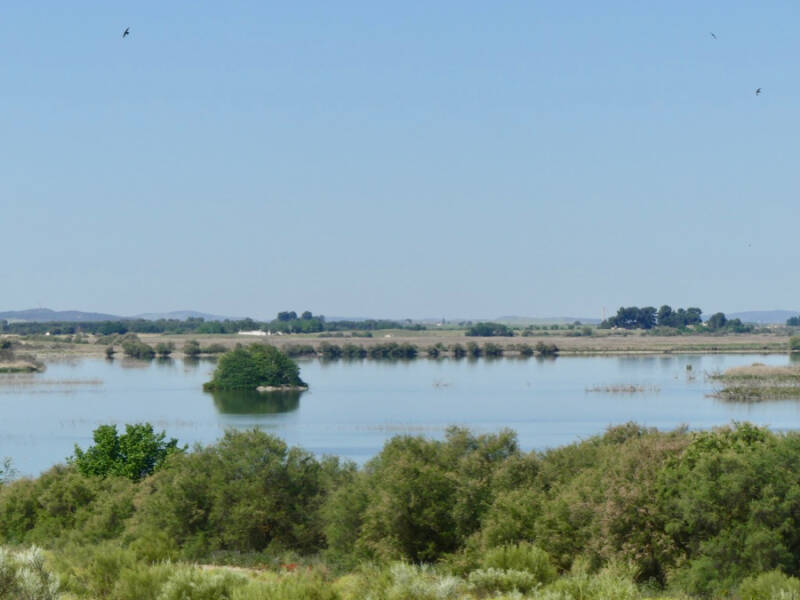 Vanmorgen zijn we naar las Tablas de Daimiel geweest. Het gebied hier wordt de ‘Ojos del Guadiana’ genoemd. De rivier de Guadiana , we hebben in Medellín 2 weken geleden nog aan deze rivier gestaan, stroomt hier door een breed veld van moerassen en vennen, de z.g.n wetlands. Die Ojos(ogen ) slaan op ondergrondse waterstromen die in dit gebied aan de oppervlakte komen. Tablas zijn verbrede ondiepe rivierbeddingen en daaraan ontleent het gebied zijn naam.