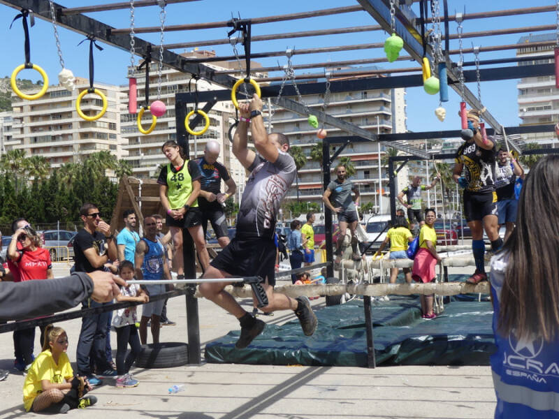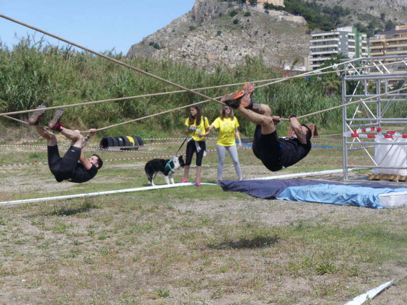 Er was vandaag een groot sportevenement bij de gedoogplek hier in de buurt. Op een groot circuit waren er allerlei takken van sport verenigd , zeker geen olympische sporten maar een mengelmoes van hardlopen, sjouwen met autobanden hindernissen nemen en vooral competitie-elementen waarbij spierkracht vereist was omdat het er op aan kwam om je hangend, bengelend , voortbewegend over touwen afstanden te overbruggen. Volgens onze zoon Martijn heet zo'n sportgebeuren een survival run, het was leuk om daar even te kijken.