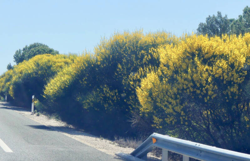 Vanmorgen zijn we al om 9.00 uur vertrokken, het was 361km naar Cullera. Het eerste stuk was tamelijk vlak, eerst nog veel wijnbouw, later meer groene velden afgewisseld met geploegde akkers met donkerrode aarde. Er stond in het begin veel wind, via de matrixborden werd gewaarschuwd voor ‘rachas de viento’, windvlagen. Aanvankelijk reden we noordelijk via de gratis A43, deze ging over in de A3 en boog af in oostelijke richting. Meteen had je een ander landschap , niet meer vlak maar meer bergachtig. En had je eerst nog af en toe een veld met zonnepanelen, nu kreeg je af en toe een bergkam met een windmolenpark. En veel bloeiende bremstruiken langs de weg, al sinds februari in Marokko zien we die bloeien.