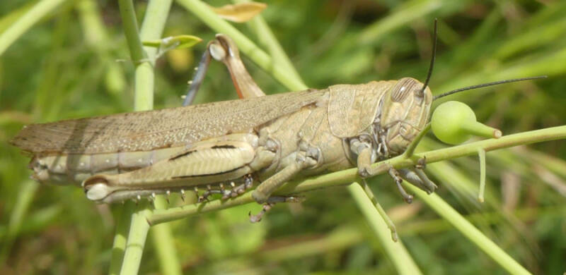 Imposant op een andere manier is een bloemkoolsprinkhaan, vrouwtjes kunnen 6,5cm lang worden. Al vaker gefotografeerd deze reis, nu weer naast de camper.Hij wordt ook wel Egyptische sprinkhaan genoemd. Het is een treksprinkhaan en ze kunnen gaan zwermen, ze komen in het hele Midd. Zeegebied voor.