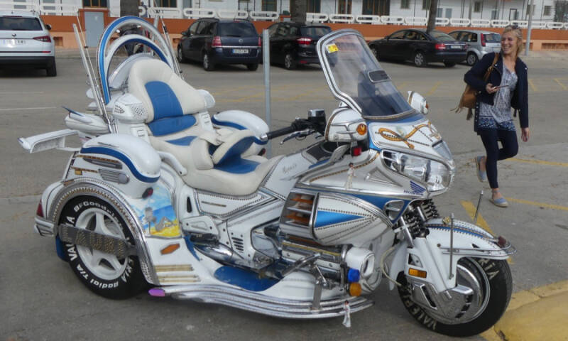 De Honda Goldwings blijven binnendruppelen, deze was flink gepimpt door de eigenaar. Mooi? Mwahh...., wel imposant zo'n motor