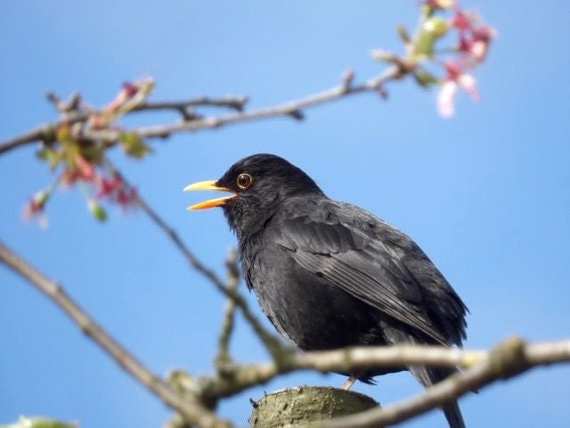 De merel is de hele tijd blijven zingen nadat het vrouwtje door de kat van het nest is gegrist en opgegeten. Aan het begin van de week kwam er een nieuw vrouwtje die een nest begon te bouwen in een boom in de tuin van de buren. Grappig om te zien dat het mannetje een nieuw vrouwtje heeft gevonden, een weduwe of een ontrouw vrouwtje, we zullen het niet weten.