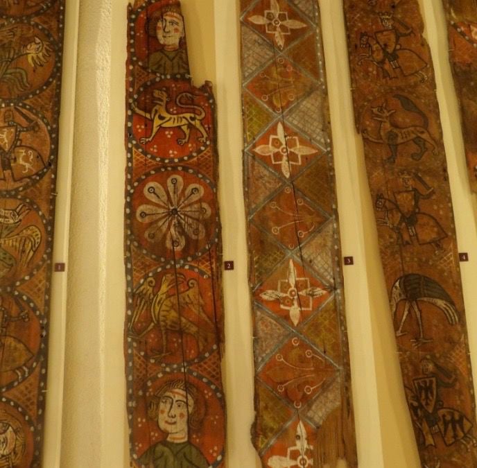 In het touristenbureau is een kleine tentoonstelling van oude planken die uit middeleeuwse gebouwen komen. Naast afbeeldingen van gezichten en fantasiefiguren die daar op zijn geschilderd zie je dat humor in die tijd ook genitaal, poep en pies, gericht was.