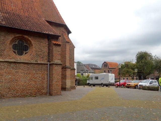 de camper staat weer bij ons huis op het kerkplein