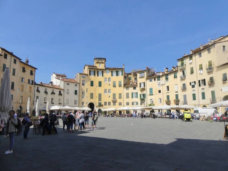 We vinden Lucca een mooie stad, alle bezienswaardigheden liggen dicht bij elkaar. Je vindt er talrijke pleinen en huizen in mooie kleuren zoals zalmroze, geel , terracotta, donkerrood etc en leuke smalle straatjes. Het enige minpuntje is dat er af en toe nog auto’s door de straatjes rijden maar je zou er maar wonen, dan zou je af en toe ook behoorlijk toeristen moe zijn.