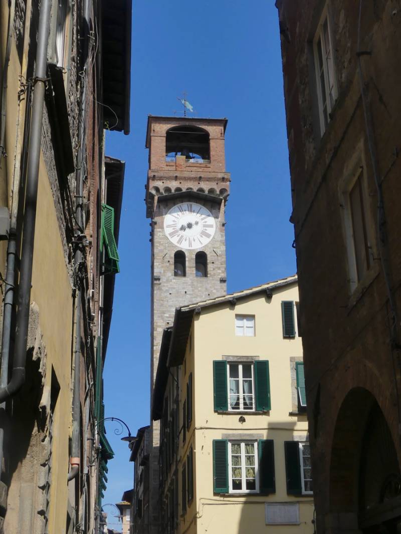 Daar achter ligt de Torre delle Ore, een toren met een uurwerk er bovenin. Deze toren uit de 13e eeuw is de hoogste van de stad Lucca en het uurwerk is in de 18e eeuw wat gemoderniseerd.