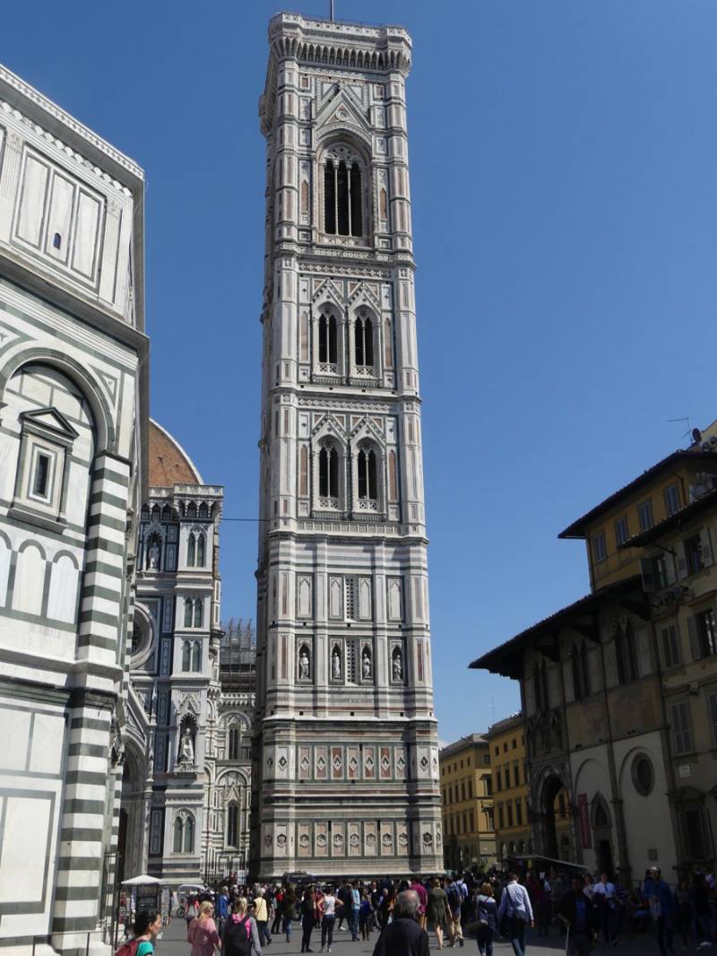Vanmiddag zijn we Florence in geweest en buslijn 2 stopt vlakbij de camping. De bus rijdt naar het station en vandaar is het ongeveer 10’ lopen naar de dom waar we het eerst naar toe zijn gelopen. Die hadden we eerder gezien maar we stonden ons opnieuw te vergapen aan de schoonheid van dit kolossale bouwwerk , het is de op 3 na grootste kathedraal van Europa.