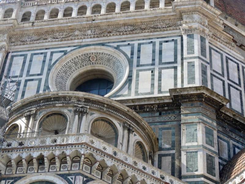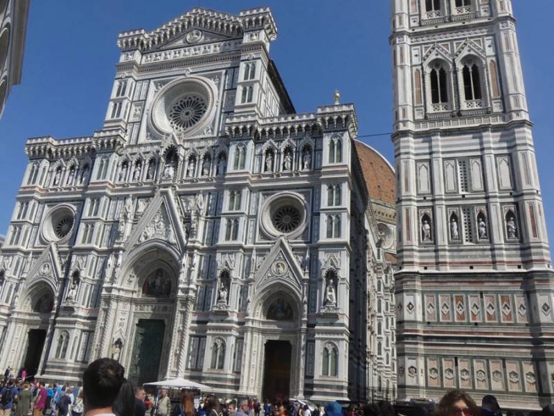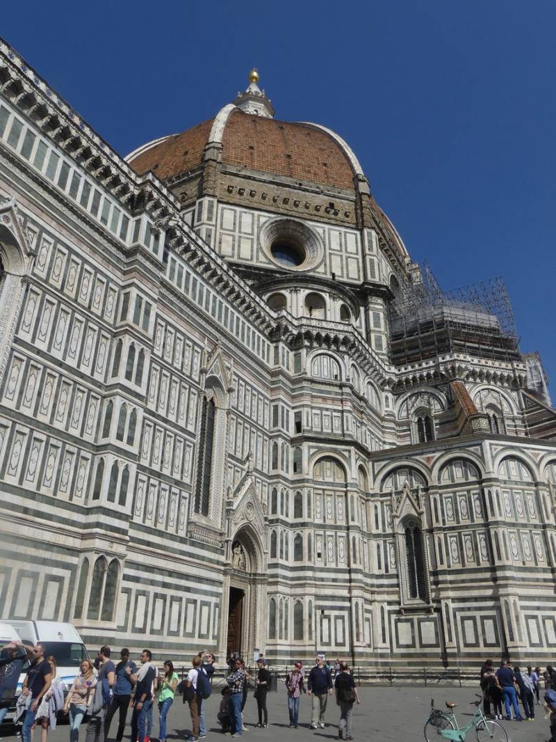 Je kunt ook de beroemde koepel van Brunelleschi bezichtigen maar de lange wachtrij schrikte ons af. Dat was jammer maar er was genoeg te bewonderen, de achtergevel was ook erg mooi.
