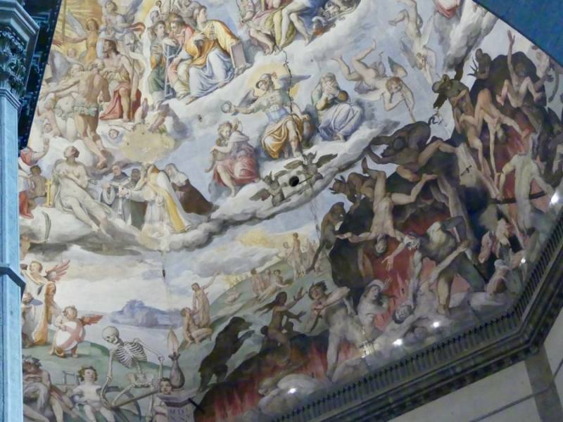 binnen in de dom een grote fresco voorstellende 'het laatste oordeel'