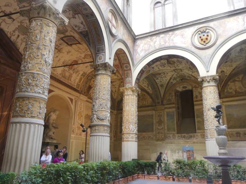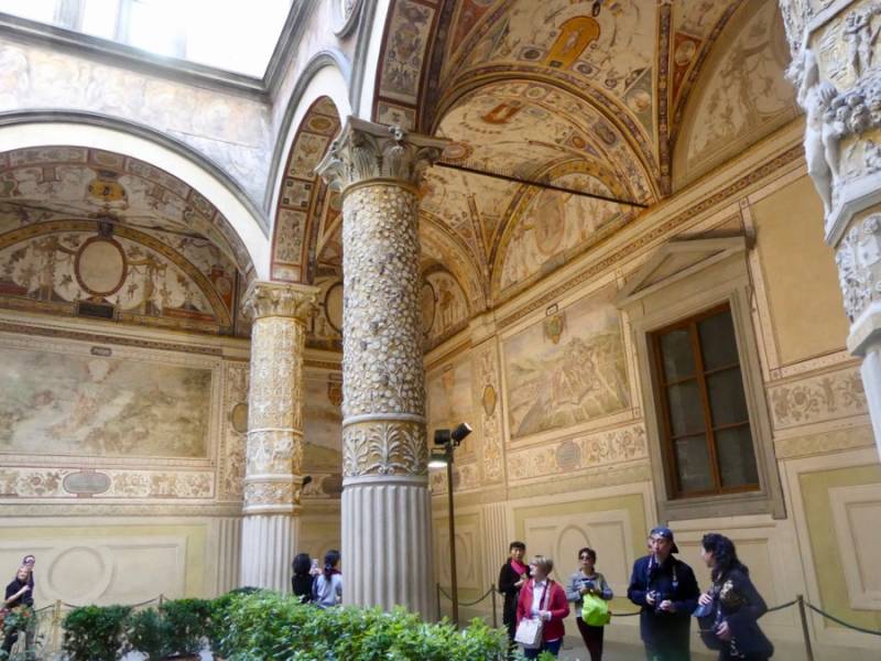 Bij binnenkomst kom je in de haast sprookjesachtig binnentuin met mooi versierde pilaren, fraai beschilderde muren en plafonds. De rest van het Palazzo is een museum.