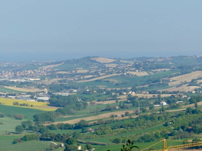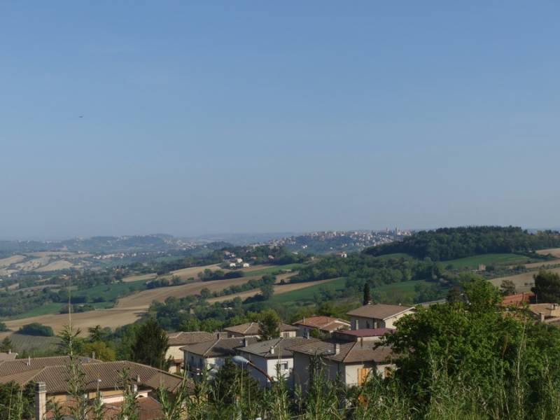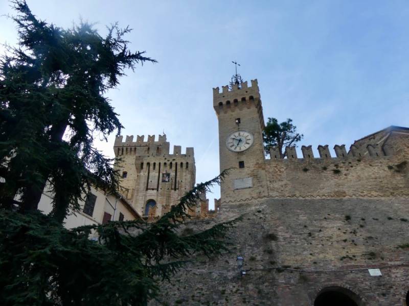 Daarom zijn we 13 km het binnenland in gereden, de heuvels in , en we staan nu op een nieuwe cp in Offagna, boven op een heuvel met een uitzicht die op een ansichtkaart ‘Groeten uit Le marche’ niet zou misstaan. Want wat is het hier weer mooi, een prachtige omgeving nog mooier dan gisteren. Ook het dorp is de moeite waard om doorheen te wandelen. Toscane heeft de naam maar het natuurschoon van Le Marche , met pittoreske dorpjes op de heuvel, mag er zeker zijn.