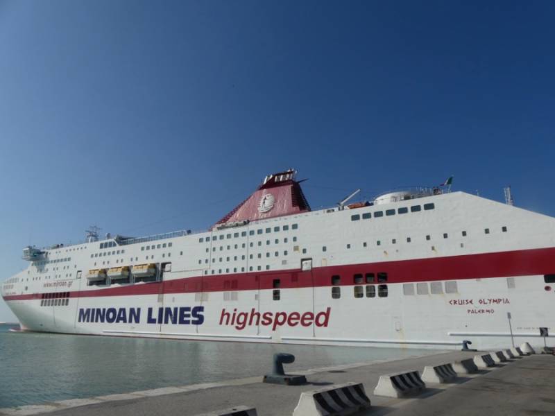 Het eten aan boord is matig, gisterenavond b.v. had Everdien had kip curry met frites, dat ging nog wel hoewel de kipstukjes gortdroog waren. Ik had een stukje smakeloze lasagne, onduidelijke visfilet die nergens naar smaakte en in een waterige tomatensaus dreef, de frites waren ook nat. De boot is van een Italiaanse maatschappij, Grimaldi Lines, dus je verwacht wel wat meer maar het was de andere keren ook niet veel beter.