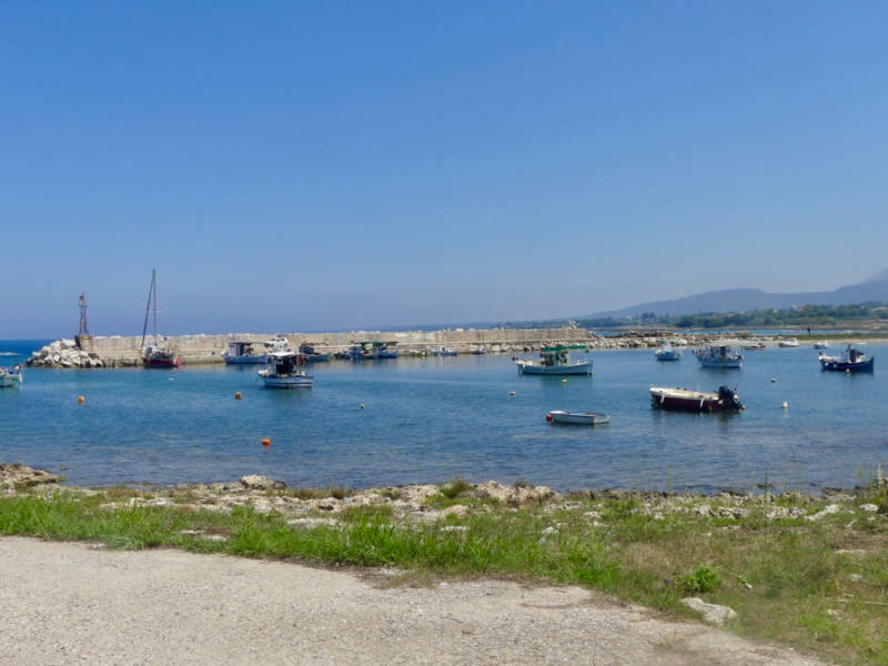 Het was nog geen 8 km naar Ayia Kyriaki, waar we, toen we vanmorgen aankwamen , helemaal alleen stonden. Maar omdat hier een natuurlijk zwembad is in een haventje, kwamen er al gauw badgasten die hun auto’s op de parking parkeerden. Maar lang niet zoveel als 4 jaar geleden toen we hier ook hebben gestaan maar toen was het hoogseizoen, augustus.