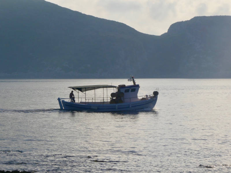 Vanmorgen vroeg is er nog een camper bij gekomen met een ouder Italiaans echtpaar uit Italië, Napels. De man wil voortdurend een praatje maken maar het blijft voor ons moeilijk om wat te begrijpen voor hem om iets duidelijk te maken. Ze zijn nog maar en paar dagen in Griekenland en maken het rondje Peloponnesus in tegengestelde richting als wij. Ondanks het feit dat ze de camper in de breedte hebben neergezet, zo’n 50m voor het hotel kwam de cost guard voorbij zonder iets te zeggen. Gisterenavond was de politie ook al voorbij gereden.