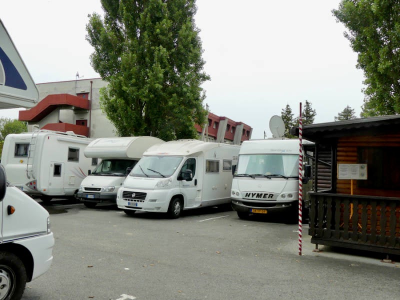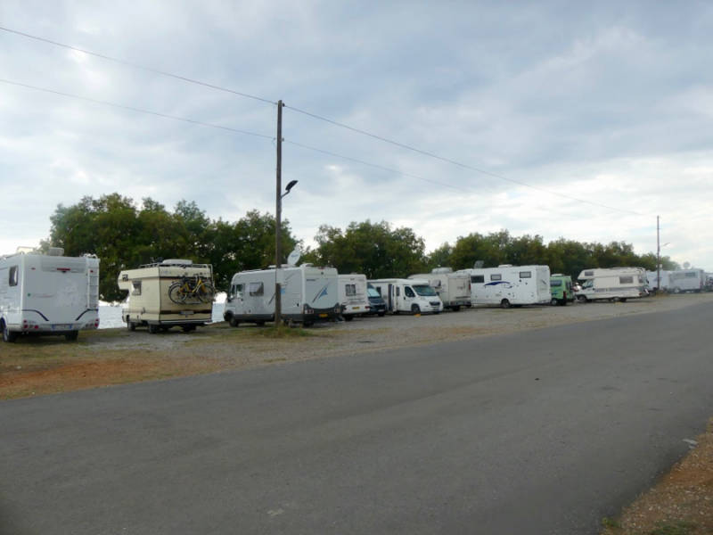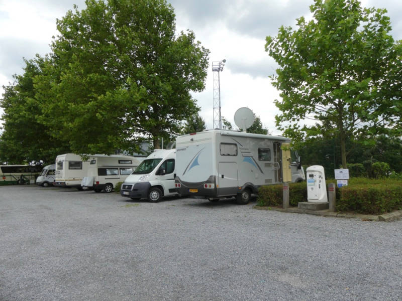 We staan hier op de grote parking waar een gedeelte voor campers gereserveerd is.