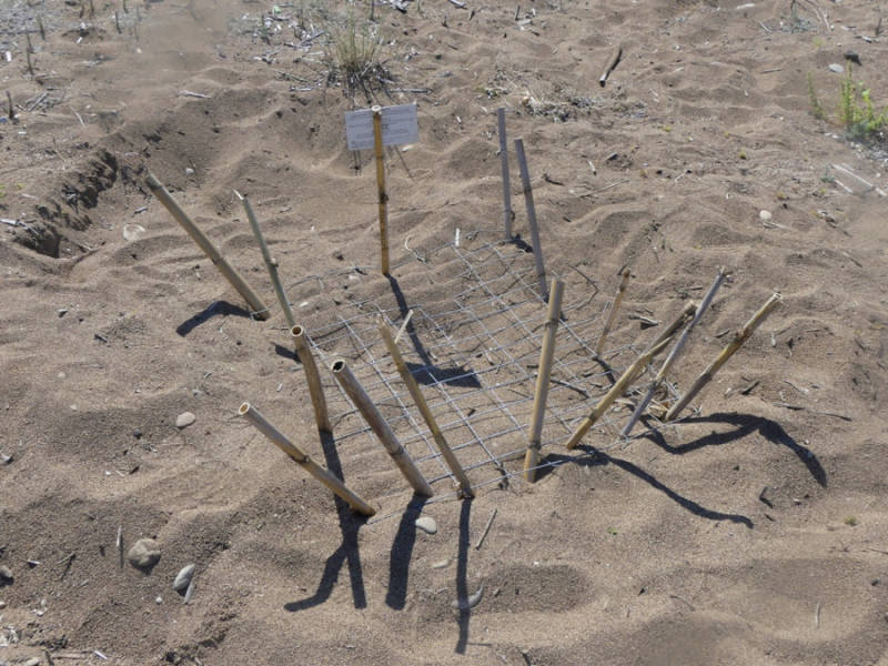 Deze bescherming gebeurt d.m.v. het afzetten van de nesten met bamboerietstokjes en er een stuk gaas overheen te leggen. ’s Nachts gaan de vrijwilligsters al op pad om nieuwe nesten te ontdekken en te markeren. De eieren, het kunnen er wel 120 stuks zijn in een nest, worden onder het zand begraven. Het leggen gebeurt in de periode van half mei tot eind augustus en de eieren komen uit na 60 dagen in het warme zand te hebben gelegen.