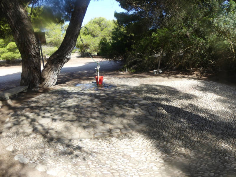 Ayia Kyriaki, bij een natuurlijk zwembad N37.118246 E21.575005, waterkraan en douche