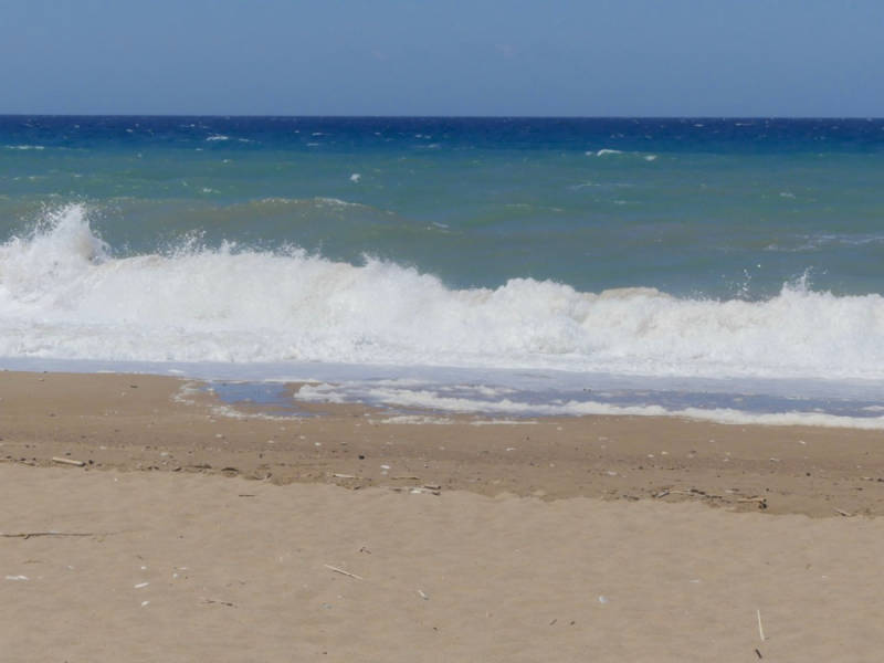 Hoe anders is het dan in Kalo Nero waar we nu staan, 27km verder. Hier staan 15 campers van verschillende nationaliteiten waaronder 2 Nederlanders maar het merendeel is Duits en staat hier al langer. Dan krijg je gedrag wat niet klopt op een gedoogplek, er reed een camper weg, w.s. naar de Lidl in Kyparissia en die liet een stoel staan om de plaats gereserveerd te houden alsof hij op een camping of een betaalde cp stond. De Tsjechen zijn hier vanmiddag ook gekomen en staan weer naast ons.