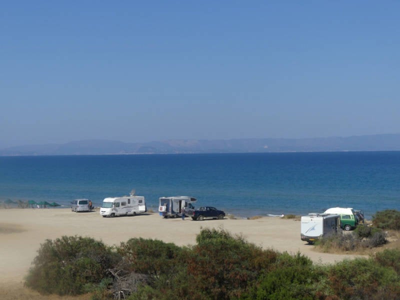 -we hebben op 35 verschillende plekken overnacht in Marokko, 5 in Italië en 31 in Griekenland waarvan we slechts voor 1 camperplaats hebben betaald (3 nachten à €10,-) , de rest waren gedoogplaatsen.