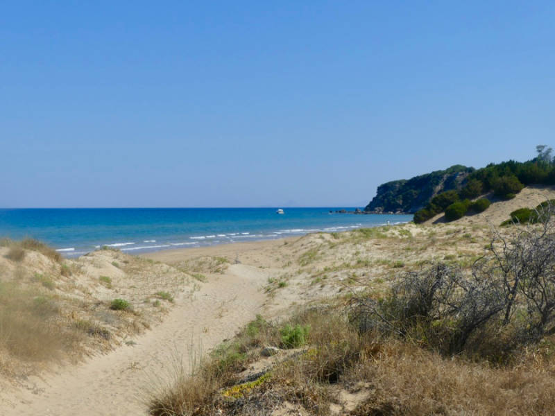 We staan op ongeveer dezelfde plek als 4 jaar geleden en we zien hier ook weer de schildpadnesten op het strand, gemarkeerd door vrijwilligers van het Archelon. We vinden het leuk hier in Kalo Nero met zijn winkeltjes en restaurantjes.