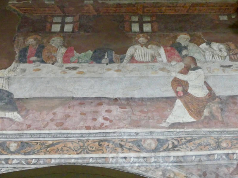 In het stadje is momenteel een feestweek, die van San Savino. Er is een braderie met de gebruikelijke rommel waar veel mensen op af komen. Leuker vinden we de kraampjes met de regionale producten, de worsten en de kazen, maar dat zegt dan weer wat over ons. We hebben in ieder geval een blauw ader kaas gekocht en een erg oude ,overrijpe, blauw ader kaas kregen we er gratis bij. Die was door de warmte zacht geworden en wat uitgelopen maar dat doet aan de smaak niets af, verrukkelijk.