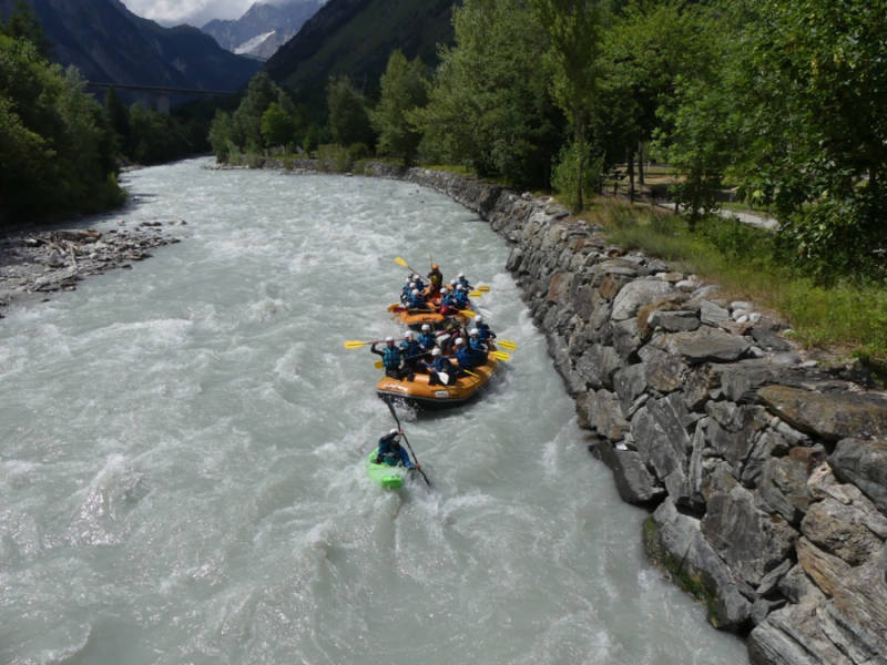 We staan weer gratis op een cp , weliswaar zonder voorzieningen, alleen drinkwater. We staan in het bergdorp Morgex naast de rivier de Dora Baltea, zeer snelstromend , waar ook weer mensen aan het raften zijn. Dus af en toe groepjes mensen, meest mannen, met strakke Goretex pakken aan en witte of gele helmpjes op die een eindje stroomopwaarts in de rubberen boten stappen.